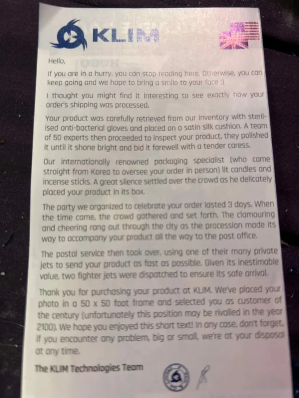 The product is exactly how I thought, and I can now listen to cds I haven’t listened to in years, but something else caught my attention. The insert tucked into an envelope. It really made me smile today, so I thought I would return the favor by giving the very rare review. It was here promptly and so far so good